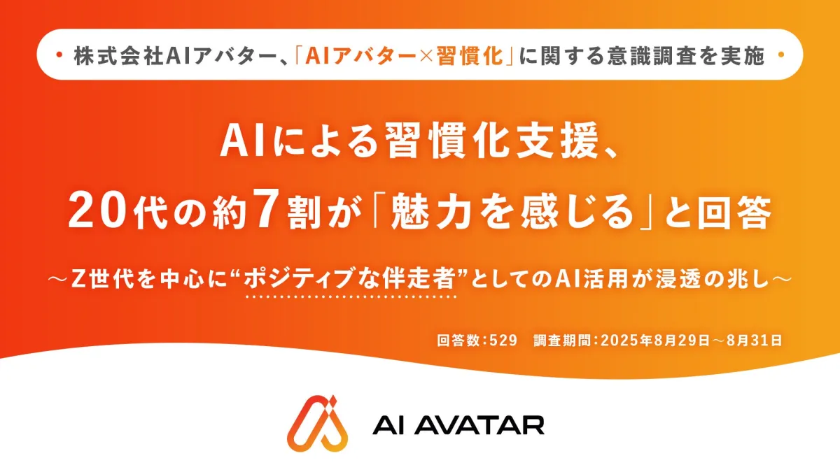 株式会社AIアバターが実施した「AIアバター×習慣化」に関する意識調査の結果が発表されました。この調査は全国の20代から60代の男女529名を対象に実施され、特にZ世代におけるAIアバターの受容度や習慣化に対する期待が浮き彫りになりました。