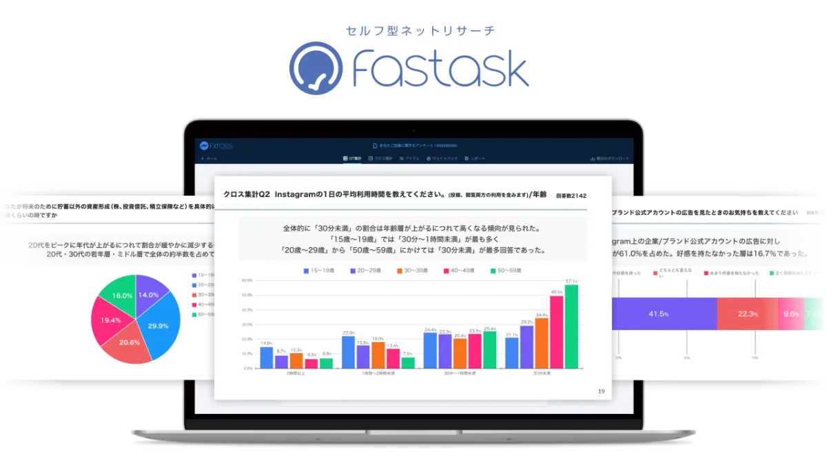 「Fastask」は、アンケートの作成から集計、分析レポートの生成までを一貫して行えるサービスです。これまで市場調査においては、調査結果の収集にも時間とコストがかかるのが一般的でした。しかしFastaskは、このプロセスを迅速に進め、結果を即日で得られるというメリットを持っています。特に最近では、顧客の動向に敏感に反応し、データに基づいた意思決定が求められる場面が多く、こうしたツールの需要が高まっています。