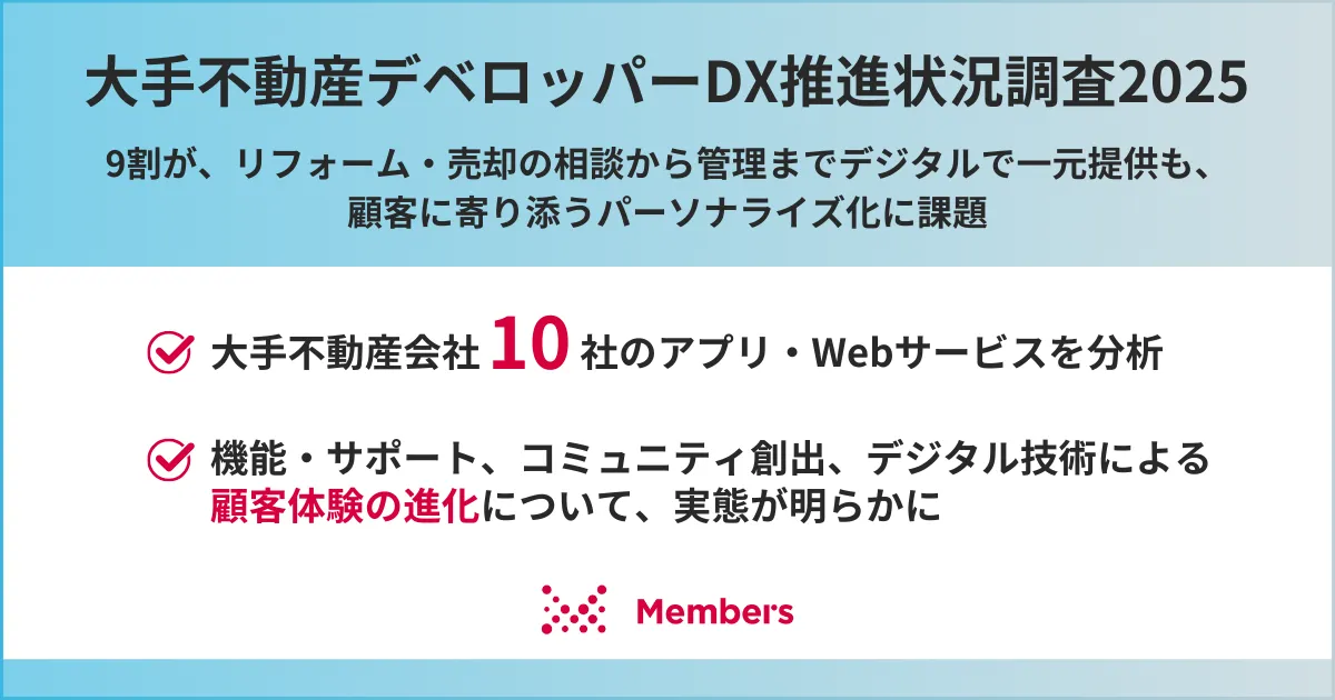 最近の住まいやライフスタイルの多様化に伴い、デジタルトランスフォーメーション(DX)は不動産業界にとっても重要な課題です。顧客との円滑なコミュニケーションや情報提供ができる住宅アプリやWebサービスの充実は、当然ながら企業の競争力にも影響を与えます。この調査結果を基に、今後の不動産デベロッパー各社のサービス開発や顧客戦略の見直しが進むことが期待されます。