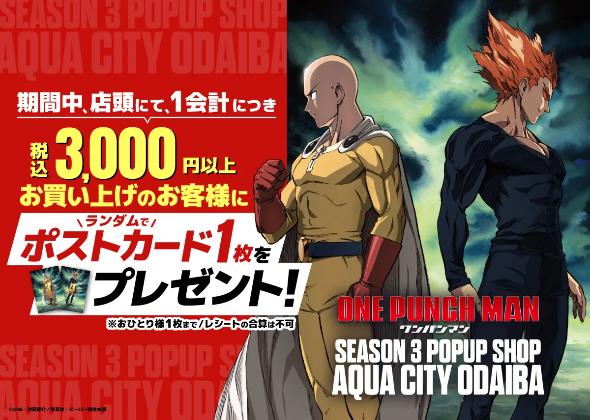 アニメ『ワンパンマン』第3期 POPUP SHOP in アクアシティお台場開催決定