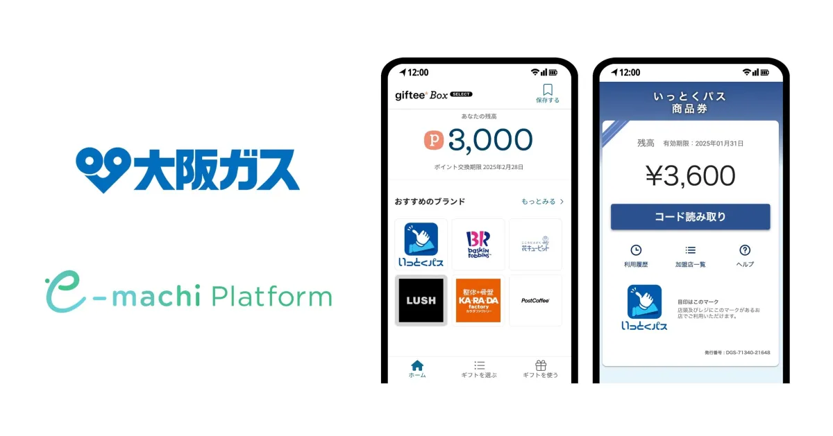 昨年の提携以降、ギフティは、大阪ガスが運営する「いっとくパス」の基盤も構築しました。このデジタルチケットは、家庭用のお客様と地域店舗をつなぐ重要な役割を果たしています。大阪ガスの飲食店と連携していることで「e街ギフト®︎」の流通が活性化し、地域のエネルギー事業の顧客が地域の飲食店に来店するきっかけを提供します。
