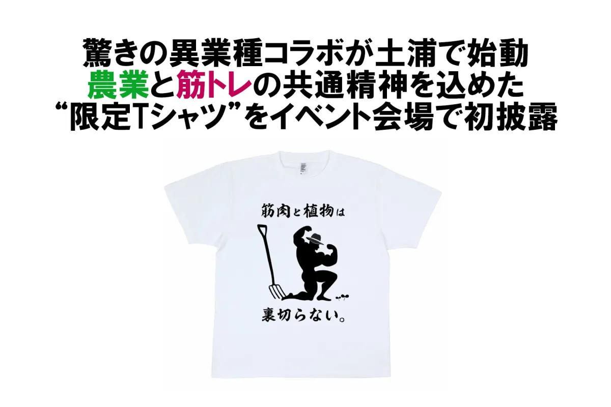 さらに、会場ではコラボレーションアイテムの販売も行います。第一弾として登場するのは「筋肉と植物は裏切らない」というメッセージがデザインされた限定Tシャツです。このTシャツは、筋肉トレーニングに励む人々や農作業をする人々の心をつなぐアイテムテです。