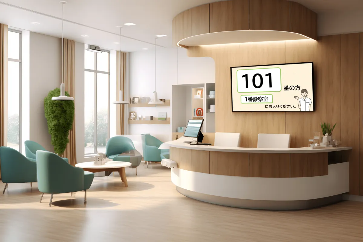 例えば、患者様が受付を済ませた後に発券される番号は、スタッフが簡単に呼び出せるように設計されています。呼び出された番号は、院内のモニターに瞬時に表示されるため、どの患者様が次に診療を受けるかが視覚的にわかりやすくなります。