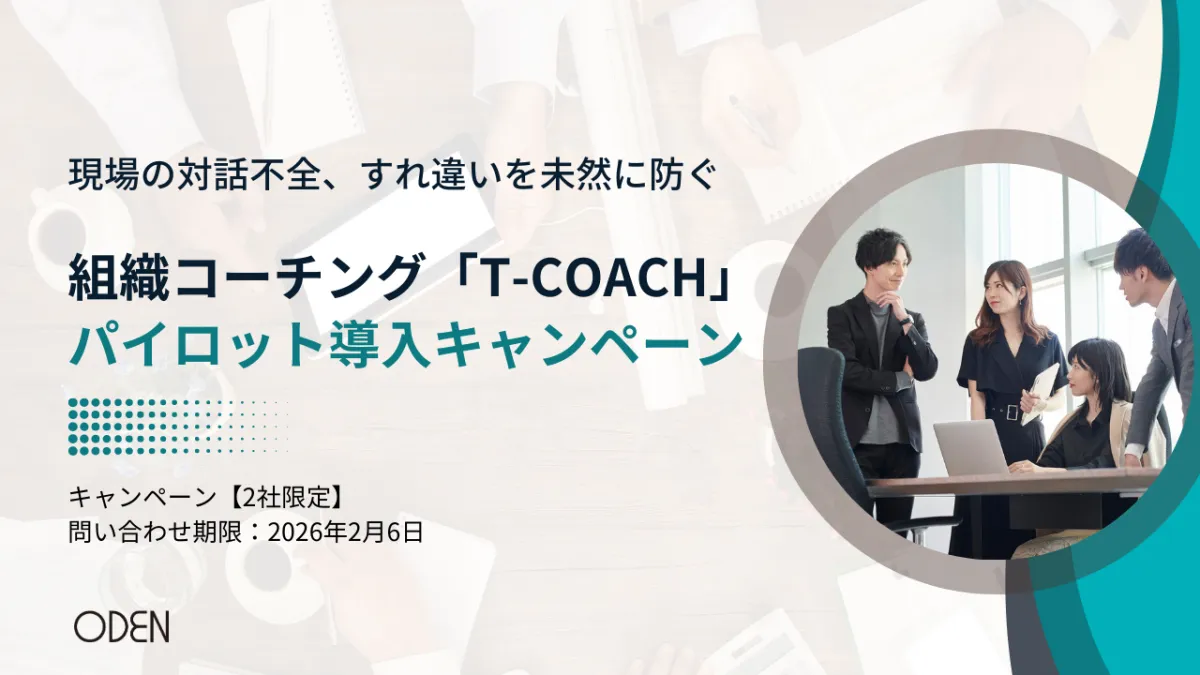 近年、多くの企業が人事施策としてコーチングを取り入れつつありますが、その効果を現場で浸透させることは簡単ではありません。株式会社Odenは、マネージャー層と現場のコミュニケーションを円滑にするための新たな取り組み、「T-Coach」によるパイロット導入キャンペーンを開始しました。このキャンペーンは、初めてコーチングを導入する企業に向けて、2社限定で行われます。
