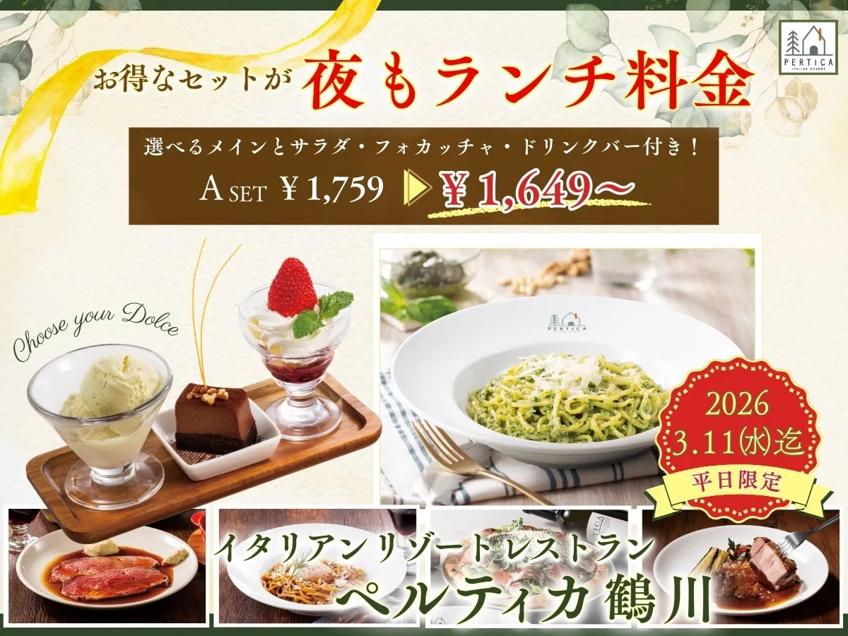 東京都町田市に位置する「イタリアンリゾートペルティカ鶴川」。ここでは、洗練されたリゾートホテルのような空間で、五感を刺激する本格イタリアンを楽しむことができます。在店期間中、特におすすめのキャンペーンを実施しており、平日ディナータイムが驚きのランチ料金で楽しめるチャンスがあります。