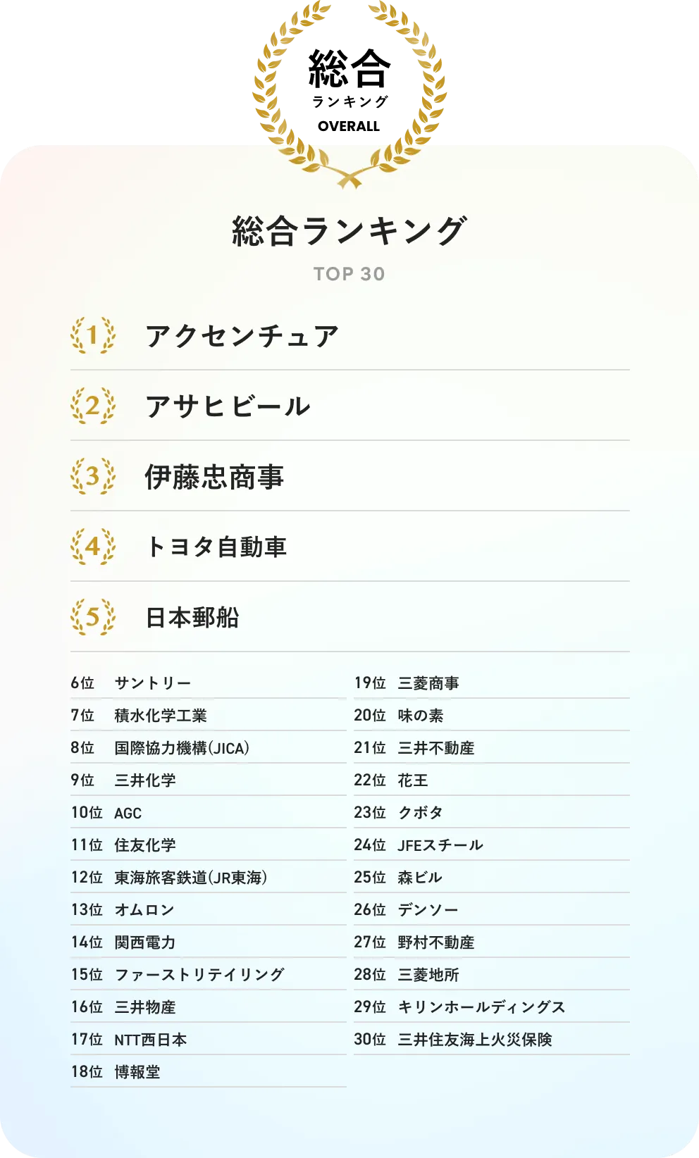 アクセンチュアが選ばれ、続いて2位に