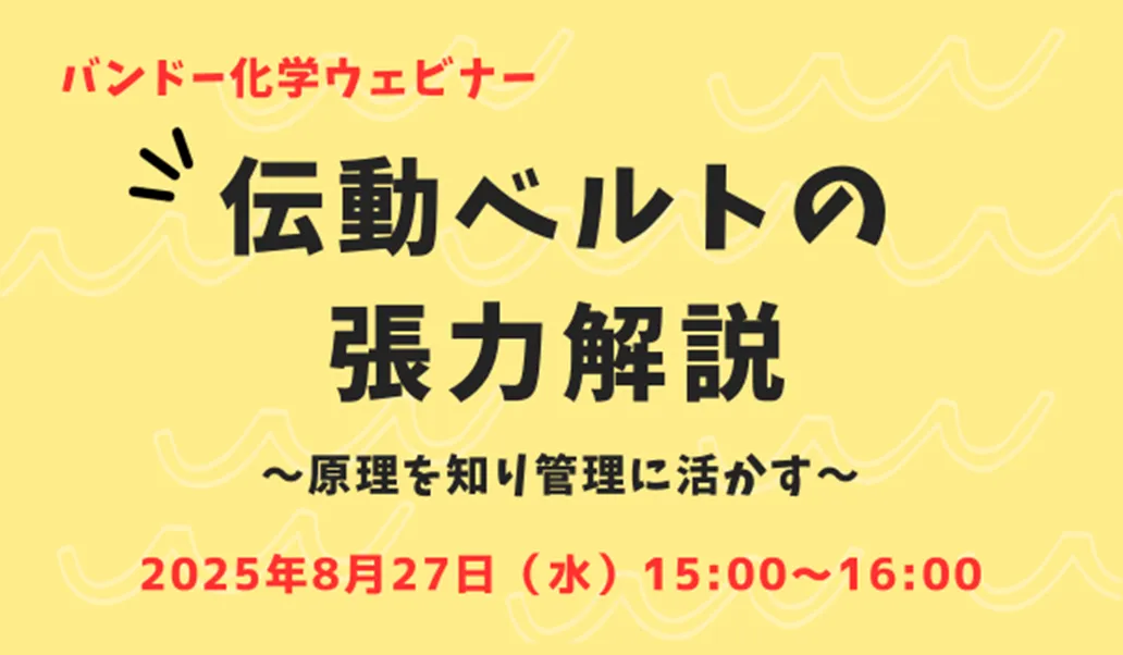 バンドー化学株式会社が主催するウェビナー「伝動ベルトの張力解説~原理を知り管理に活かす~」についてお届けします。本イベントでは、伝動ベルトの張力に関する疑問や知識を深め、業務に役立てる方法を学びます。