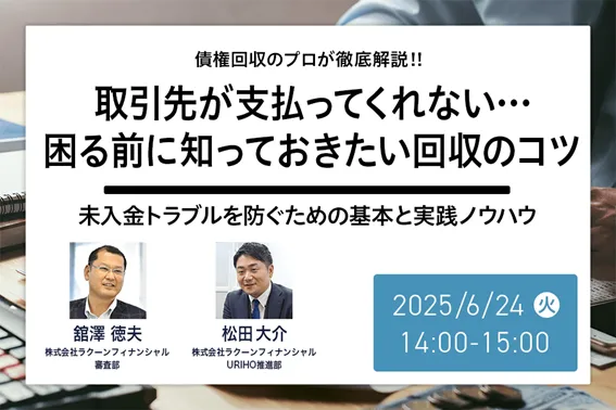 2025年6月24日、14:00から15:00までオンラインで行われる「債権回収セミナー」は、未入金問題の具体的な対応策を解説し、参加者が直面している債権回収業務の課題に答える内容となっています。無償で参加できるため、気軽に登録してみる価値があります。