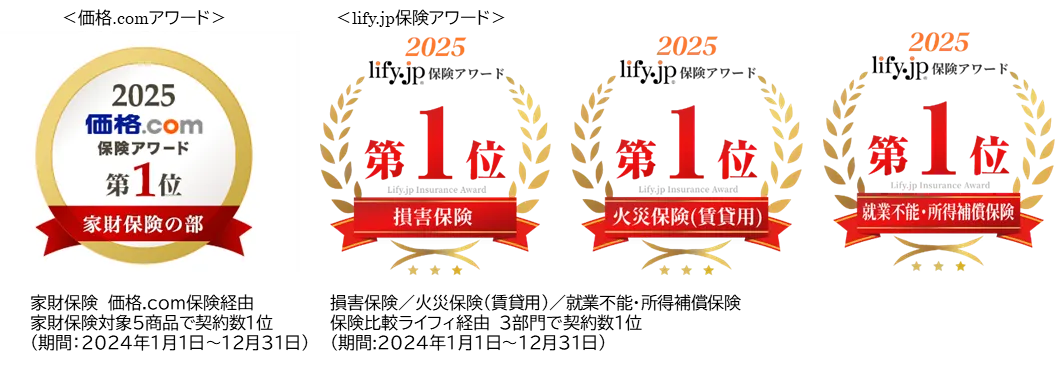 次に、「lify.jp保険アワード2025年度版」では、日新火災の「お部屋を借りるときの保険」は「損害保険部門第1位」に輝き、また「火災保険(賃貸用)部門」でも第1位を獲得しました。これらの受賞は、特に新規契約件数の多さを評価された結果です。