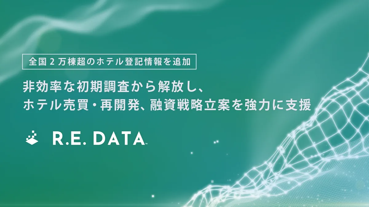 不動産テック企業であるTRUSTART株式会社は、同社が開発したプラットフォーム「R.E.DATA」に新たに全国2万棟を超えるホテルの登記情報を追加したと発表しました。これにより、不動産関連業務のデジタルトランスフォーメーション(DX)が加速します。