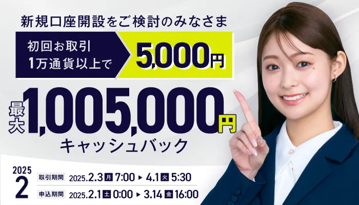 - - 期間: 2025年2月1日(土)から2025年2月28日(金)までの間に、SBI FXトレードの公式サイトから新規口座の申し込みを完了。