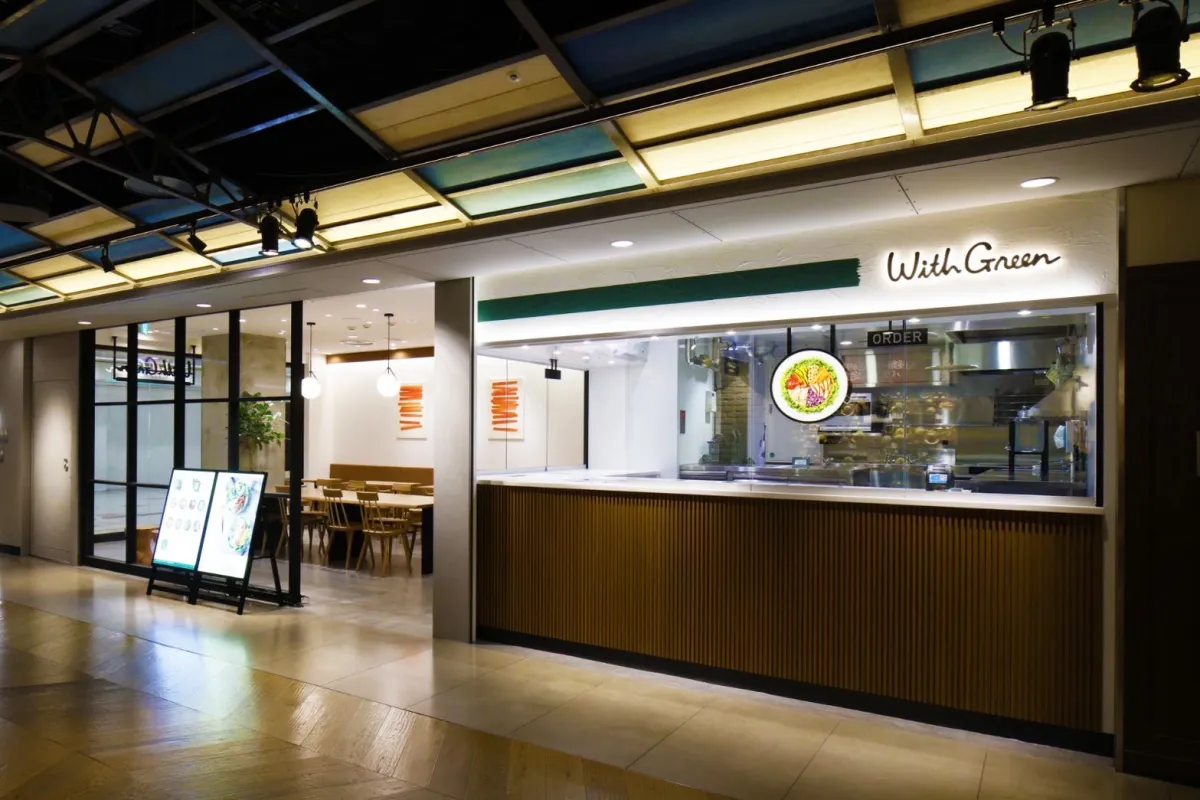 新店舗の『WithGreen 岡山一番街店』は、20席のイートインスペースを完備し、落ち着いた雰囲気の中で食事を楽しむことができます。また、近隣オフィスや家庭で楽しんでもらえるよう、テイクアウトやデリバリーサービスも提供します。
