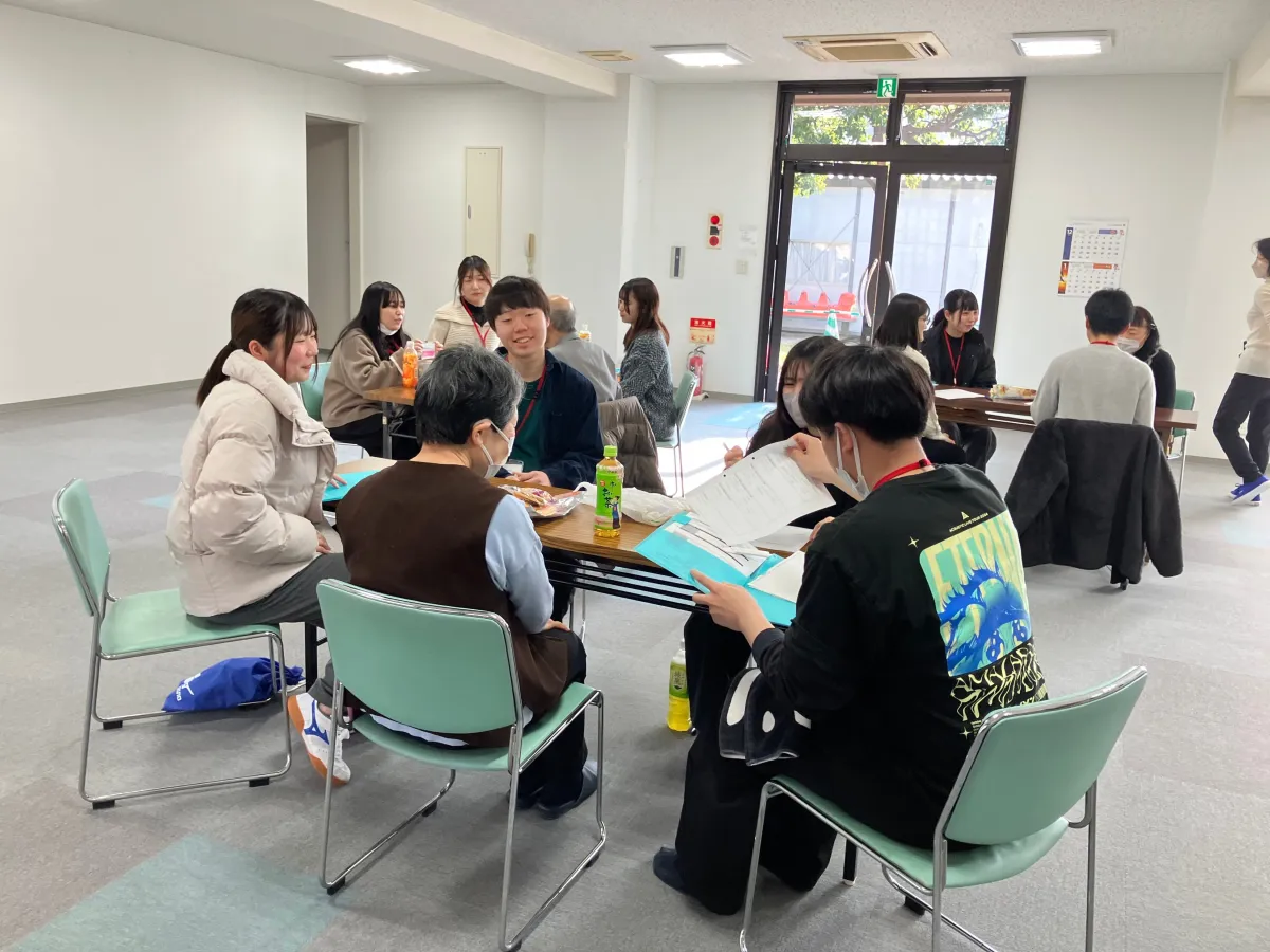 当日のインタビューでは、学生3名と高齢者1名によるグループが作られ、学生たちが思いもよらぬ人生のエピソードや戦争体験に耳を傾け、互いに深い対話が展開されました。同じ出身地を持つ方との共通の話題や、懐かしい経験談に花が咲く場面もあり、参加者全員が非常に濃密な時間を共有しました。インタビュー後、学生たちはその経験を振り返る時間を持ち、学びをさらに深めました。