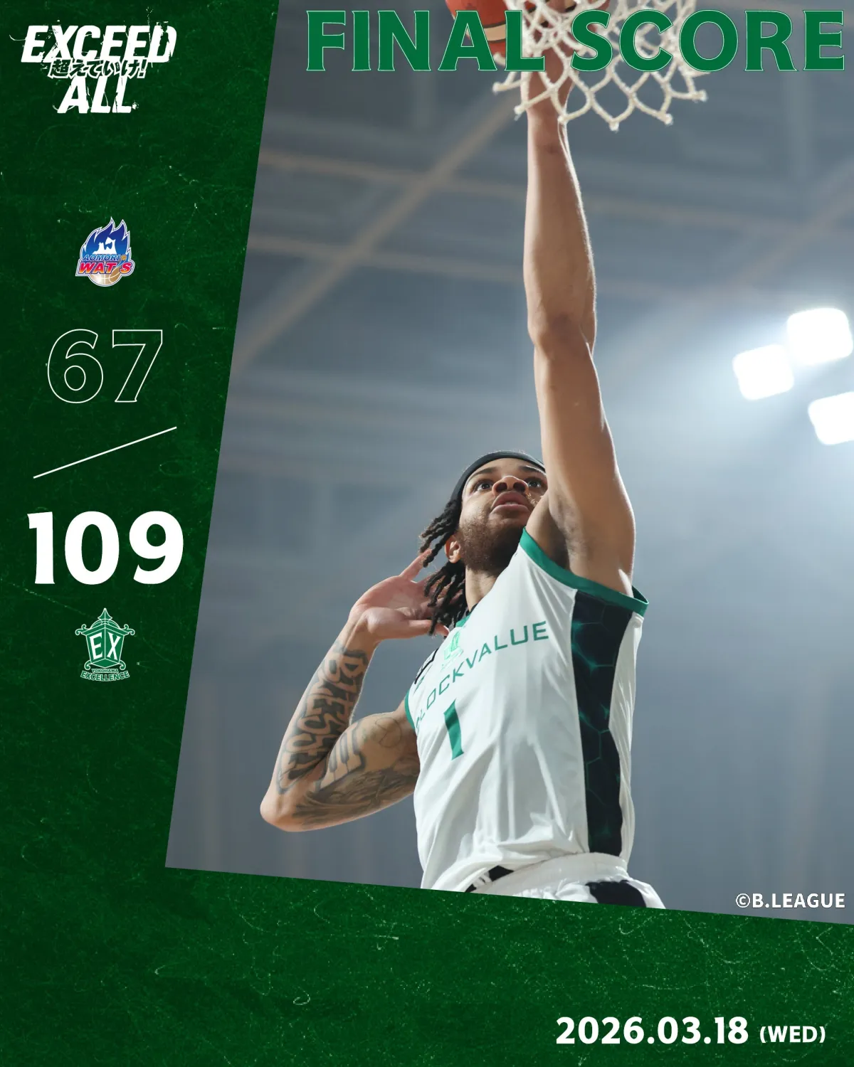 いよいよ横浜エクセレンスの新戦力、シェイク・ケイタがデビューを果たしました。2025-26 B2リーグ戦の第25節、アウェーでの青森ワッツとの対決で、チームは109対67という素晴らしいスコアで勝利を収めました。熱心な応援をしてくださったファンの皆様、本当にありがとうございました。