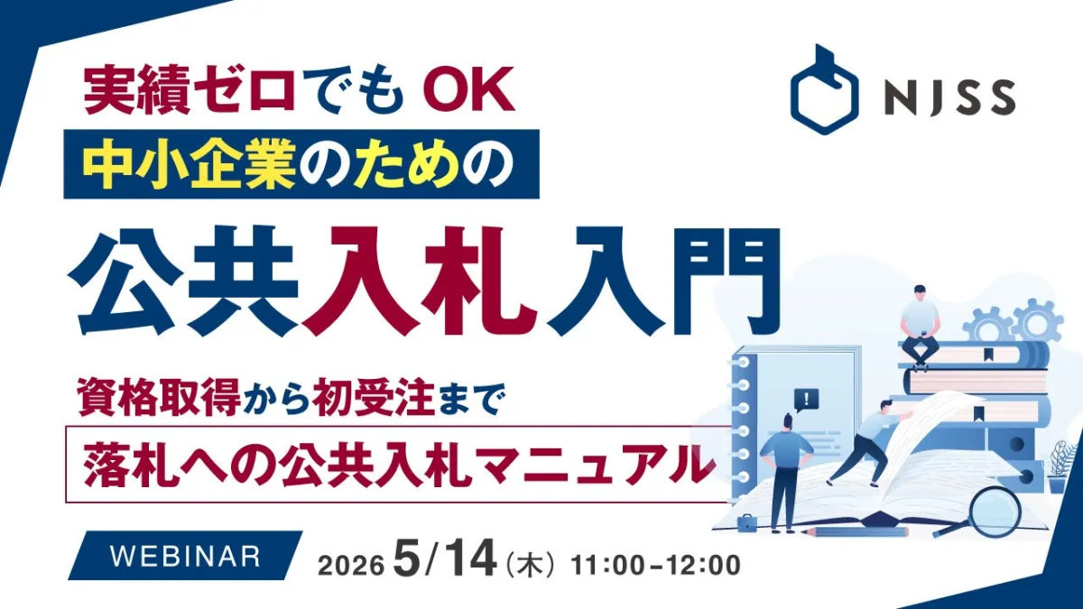 中小企業のビジネスチャンスを広げるためのウェビナー、『実績ゼロでもOK、中小企業のための公共入札入門』が開催されます。本ウェビナーでは、公共入札の仕組みや参加方法を詳しく解説し、実践的なノウハウを提供します。