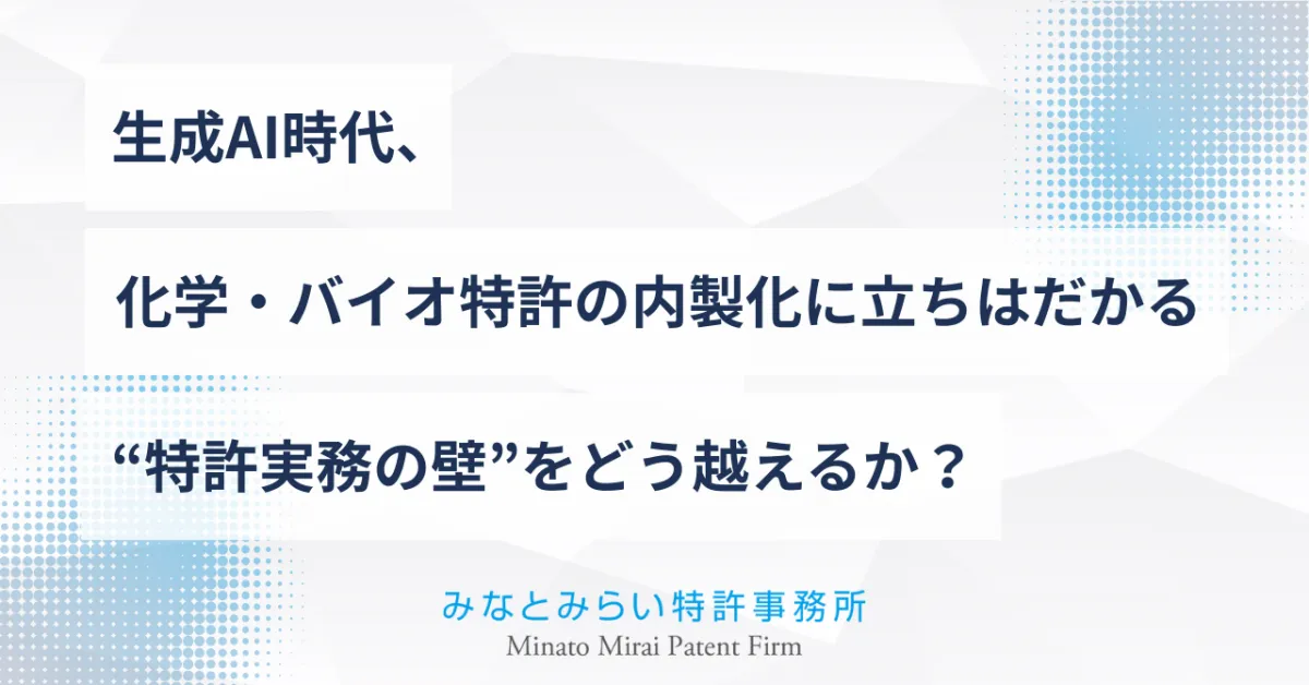 近年、生成AIの進化により、特許明細書の作成が企業内で進められる「内製化」が注目されています。特に化学・バイオ分野では、その実務の難易度が企業内での取り組みを阻む要因となっています。神奈川県横浜市に所在する弁理士法人みなとみらい特許事務所は、2026年2月から、化学・バイオ分野に特化した「特許明細書の内製化補助サービス」を開始します。このサービスは、特許明細書の品質を担保しながら企業内の知財業務を強化するものです。