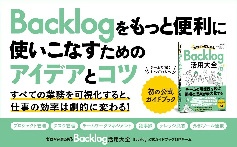 この書籍は、Backlogを初めて使用する方だけでなく、既に利用している方でもさらなる活用を考える方にとっても非常に有益です。