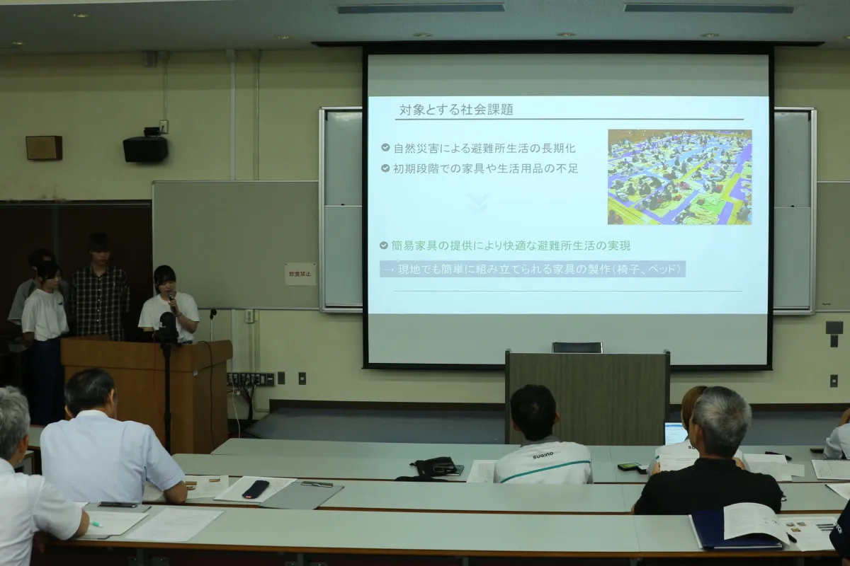 この特別演習は、「エコデザイン工学専攻科1年生」を対象として行われました。学生11名が参加し、授業期間中にスギノマシンの技術を利用し、社会課題の解決に焦点を当てたプロジェクトに取り組みました。使用されたテクノロジーには、超高圧水技術、ロボット技術、セルロースナノファイバーがあります。学生たちはチームごとに分かれ、それぞれのテーマに基づいて研究と製作を行うことが求められました。