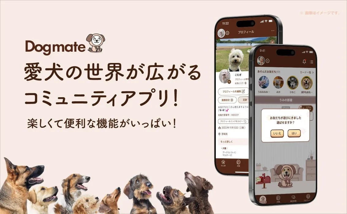 2025年7月、福島県の株式会社ケア・パレットが愛犬家向けのコミュニティアプリ「Dogmate(ドッグメイト)」をリリースする。