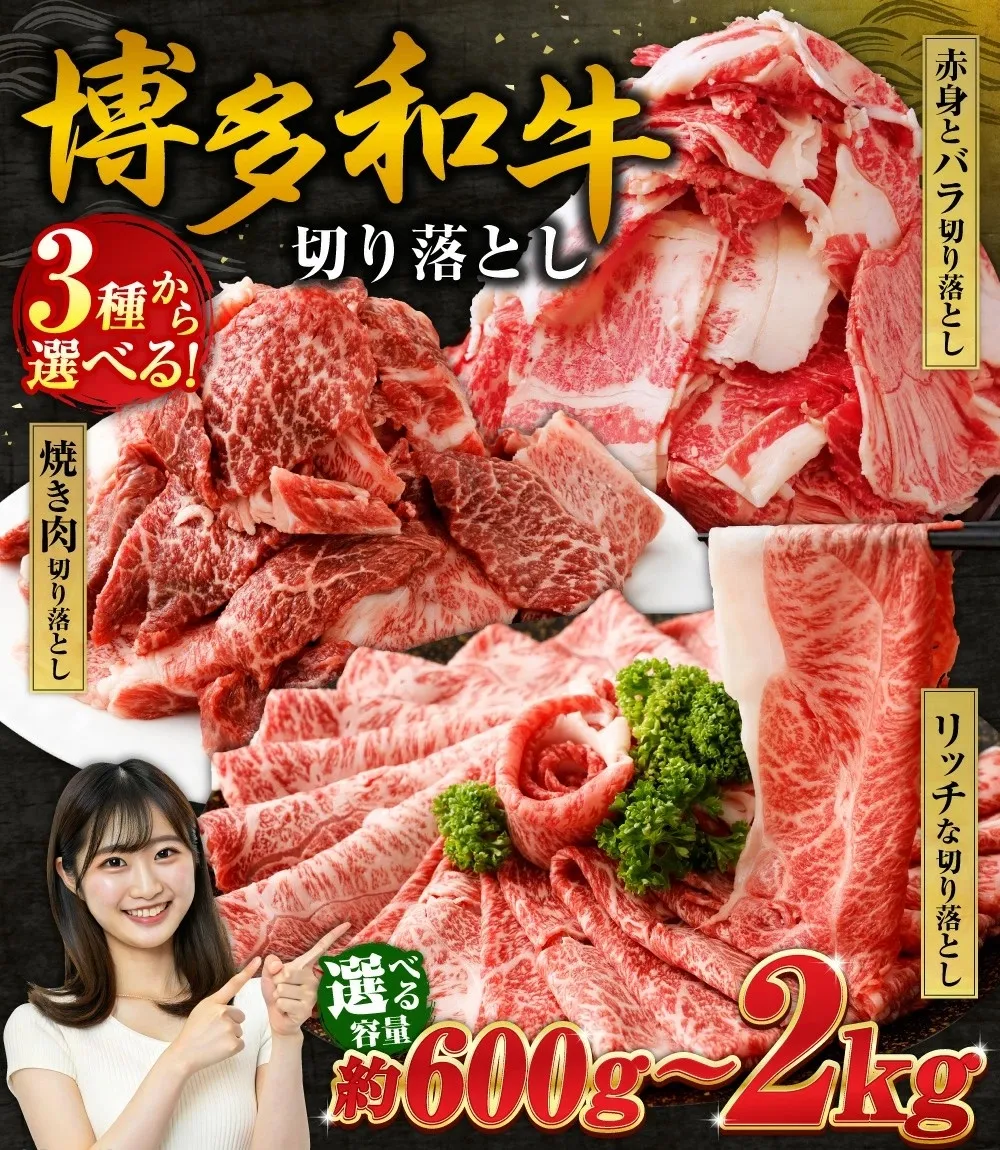 ふるさと納税の魅力を伝える!博多和牛切り落としの選べるセット