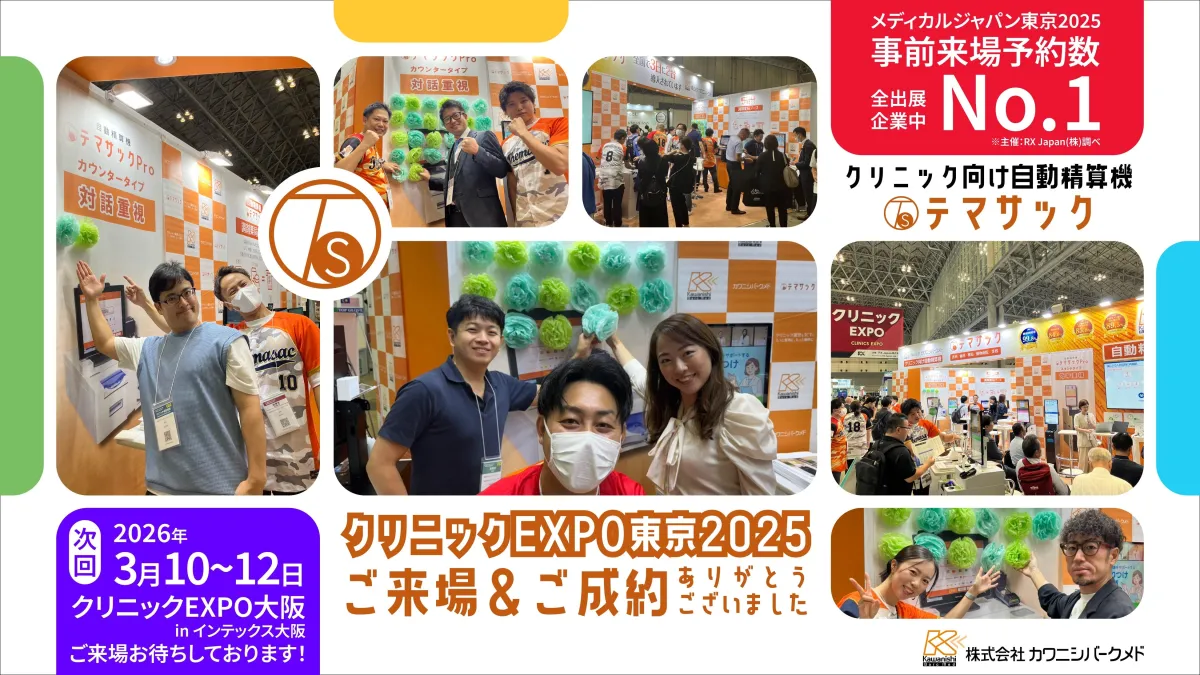 前年の10月に行われた「クリニックEXPO東京」では、全出展企業中、事前来場予約数で見事1位を獲得し、その結果、会期中に33台の『テマサック』を成約しました。この実績が今回の大阪展での出展決定に大きく寄与しています。医療機関のニーズが急増する中、『テマサック』は受付および会計業務の効率化を図るための有力な選択肢として、多くの医療機関に受け入れられてきました。