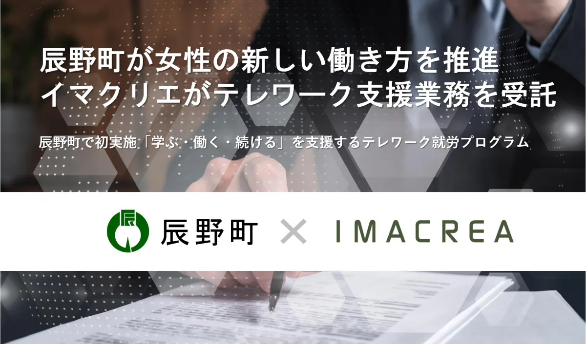 長野県に位置する辰野町が、女性にとって魅力的な働き方を提案するため、「辰野町テレワーク支援業務」を株式会社イマクリエに委託しました。本プロジェクトの目的は、地域に住む女性が自宅で働ける環境を整えることで、出産や子育て、介護といった家庭の事情と仕事を両立できるよう支援することです。