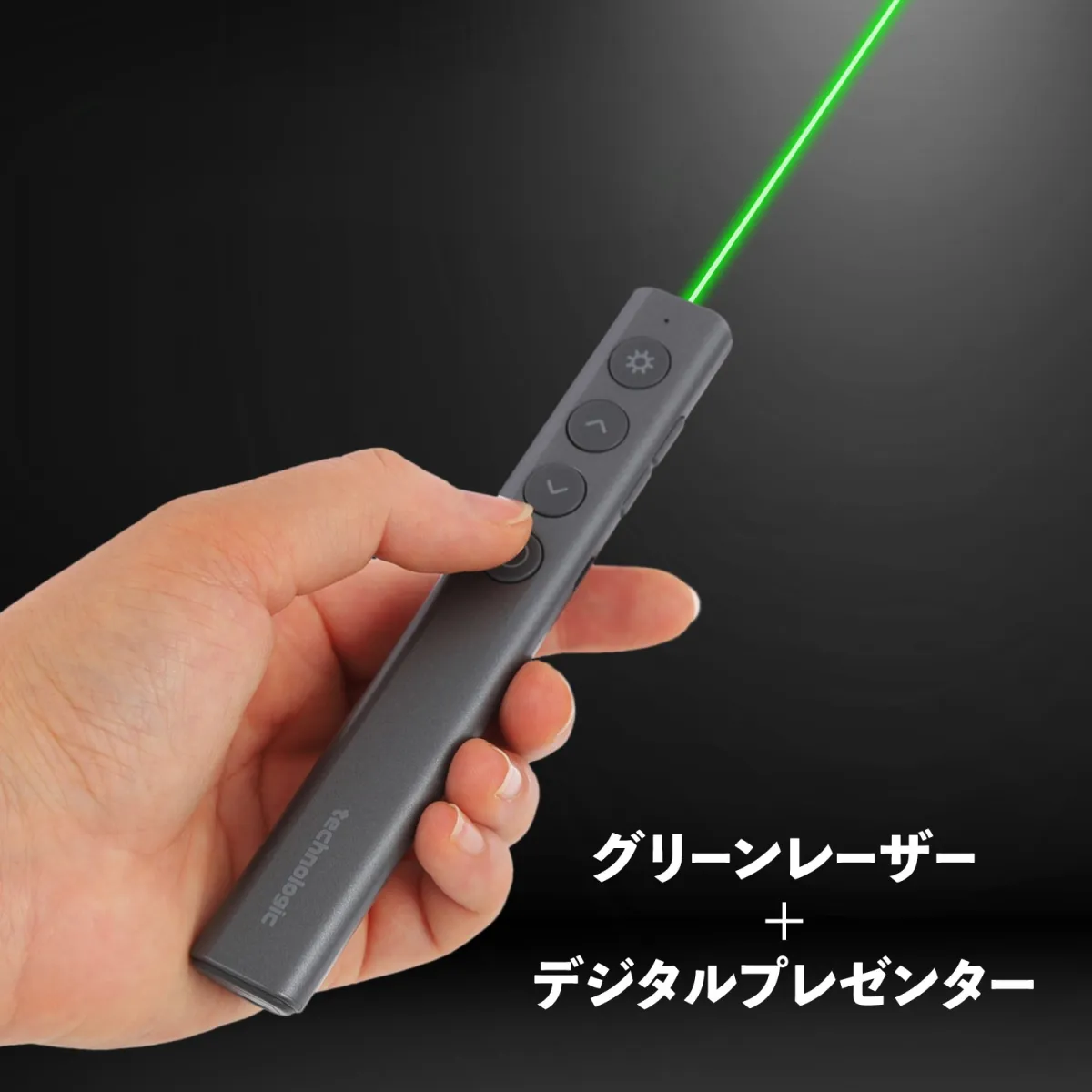 この製品には高輝度グリーンレーザーが搭載されています。明るい環境でも視認性が高く、プレゼンテーション中に大切なポイントを的確に示すことができます。特に日中の明るいオフィスや会議室でも、その鮮やかな光でしっかりとしたプレゼンテーションをサポートします。
