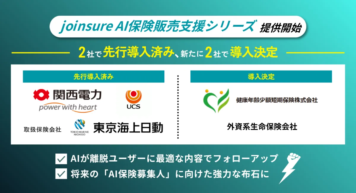 この「joinsure AI保険販売支援シリーズ」の特徴は以下の通りです。