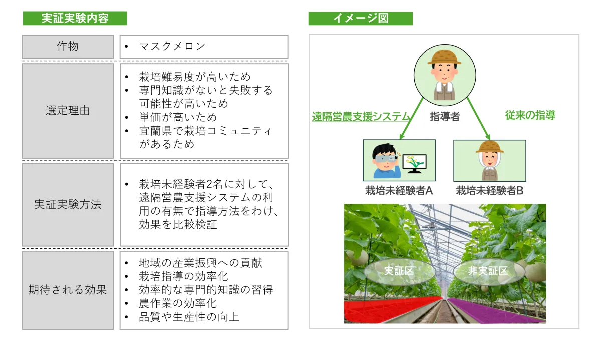 実験は、宜蘭大学の温室で行われ、マスクメロンを栽培します。この際、遠隔営農支援システムを活用するグループと、従来の方法で指導を受けるグループに分けて、その効果を比較します。このプロジェクトを通じて、科学的なデータをもとに新しい農業技術の有効性を分析し、定量的な成果を導き出すことが目指されています。
