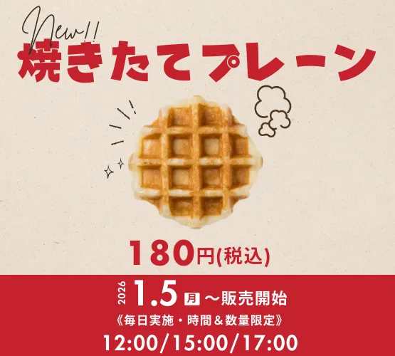 新商品『焼きたてプレーン』は、毎日12時・15時・17時に数量限定で販売されることが特徴です。焼き上がった際にはベルが鳴り、訪れるお客様に出来たてのワッフルが登場したことをお知らせします。この新しい試みは、単にスイーツを楽しむだけでなく、焼き上がりのライブ感を味わうことができる新体験を提供しています。