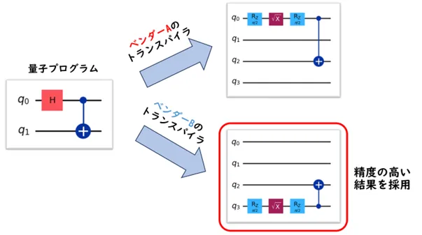 量子プログラムを実行する際、トランスパイラの選択が実行結果に大きく影響を与えます。このため、異なるトランスパイラを試すことで、より高精度の結果が得られる可能性があります。大阪大学が運営する量子クラウドでは、自動トランスパイル機能がありますが、これまでのトランスパイラは一種類のみでした。そのため、多様な選択肢を持つことが重要であり、そのニーズに応えるために『Tranqu』が開発されました。