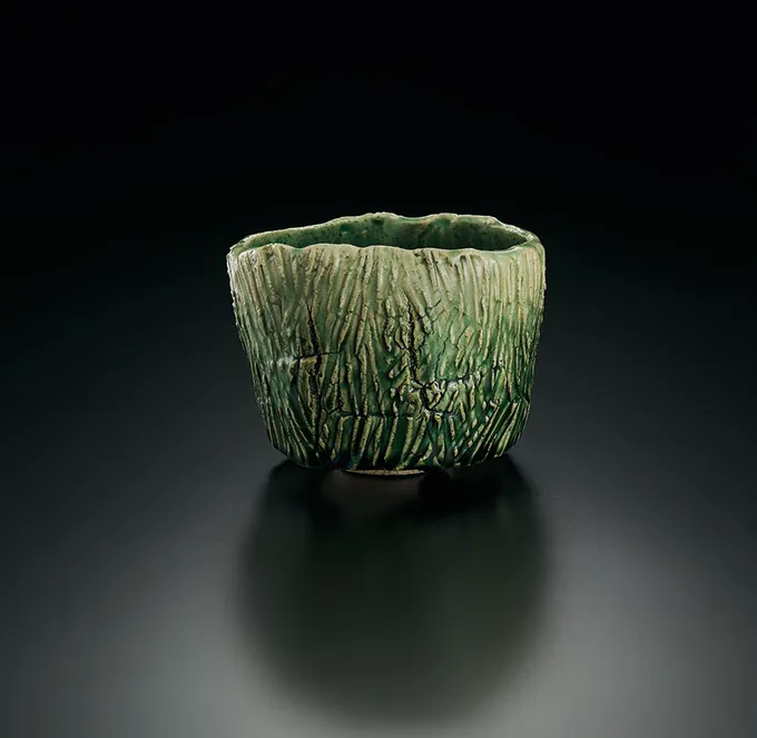 鈴木氏の作品は、特に「緑釉」の美しさが際立っています。この緑釉は、伝統的な美濃陶芸の釉薬「織部釉」をベースにしつつ、鈴木氏独自の感性で新しい形に昇華されています。彼は、ただ伝統の枠に留まらず、自身の感情や経験を作品に反映させてきました。