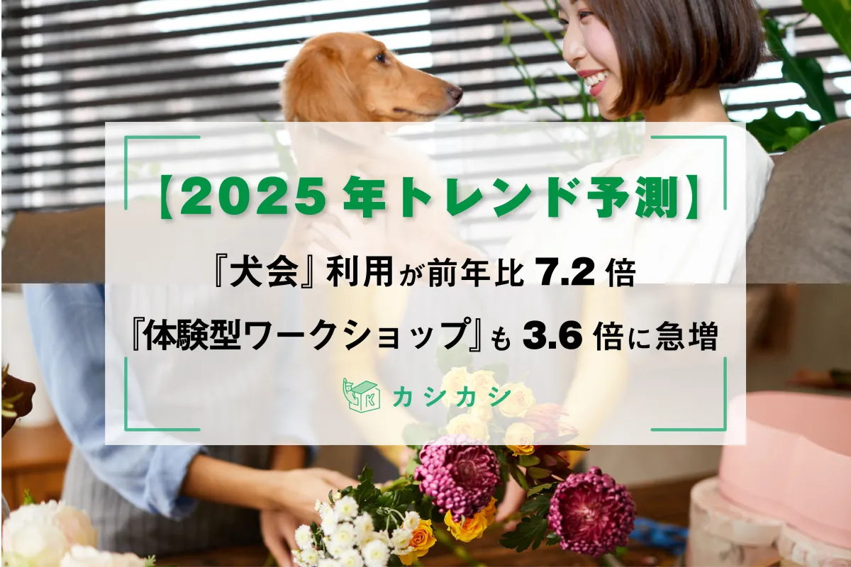 株式会社友安製作所が運営するレンタルスペース予約サイト「カシカシ」は、2025年の利用動向についての調査結果を発表しました。この調査によると、愛犬と一緒に楽しむコミュニティ活動や、創造的な体験を共有する「体験型ワークショップ」が急増しています。特に、愛犬をテーマにした利用は前年比で620%増と驚異的な伸びを見せ、体験型ワークショップも前年比262%増となっています。これらのデータから、レンタルスペースが特定の目的を持ったコミュニティリーダーとしての役割を果たすように進化していることがわかります。