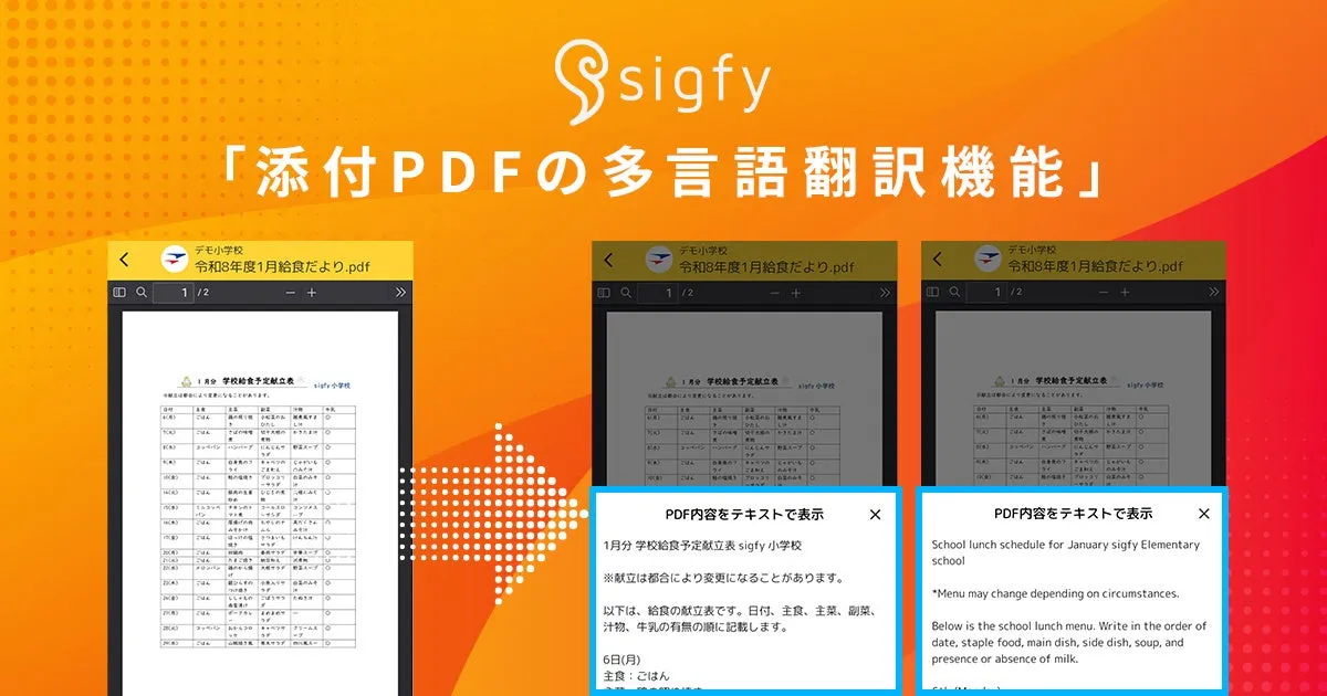株式会社Fusic(福岡県福岡市)は、学校と保護者をつなぐ連絡サービス『sigfy』に、特許出願中の独自技術を活用した「添付PDFの多言語翻訳機能」を実装しました。この新機能により、学校から送信されるPDFファイルが多言語に翻訳されるため、保護者は自分の母国語で情報を確認できるようになりました。