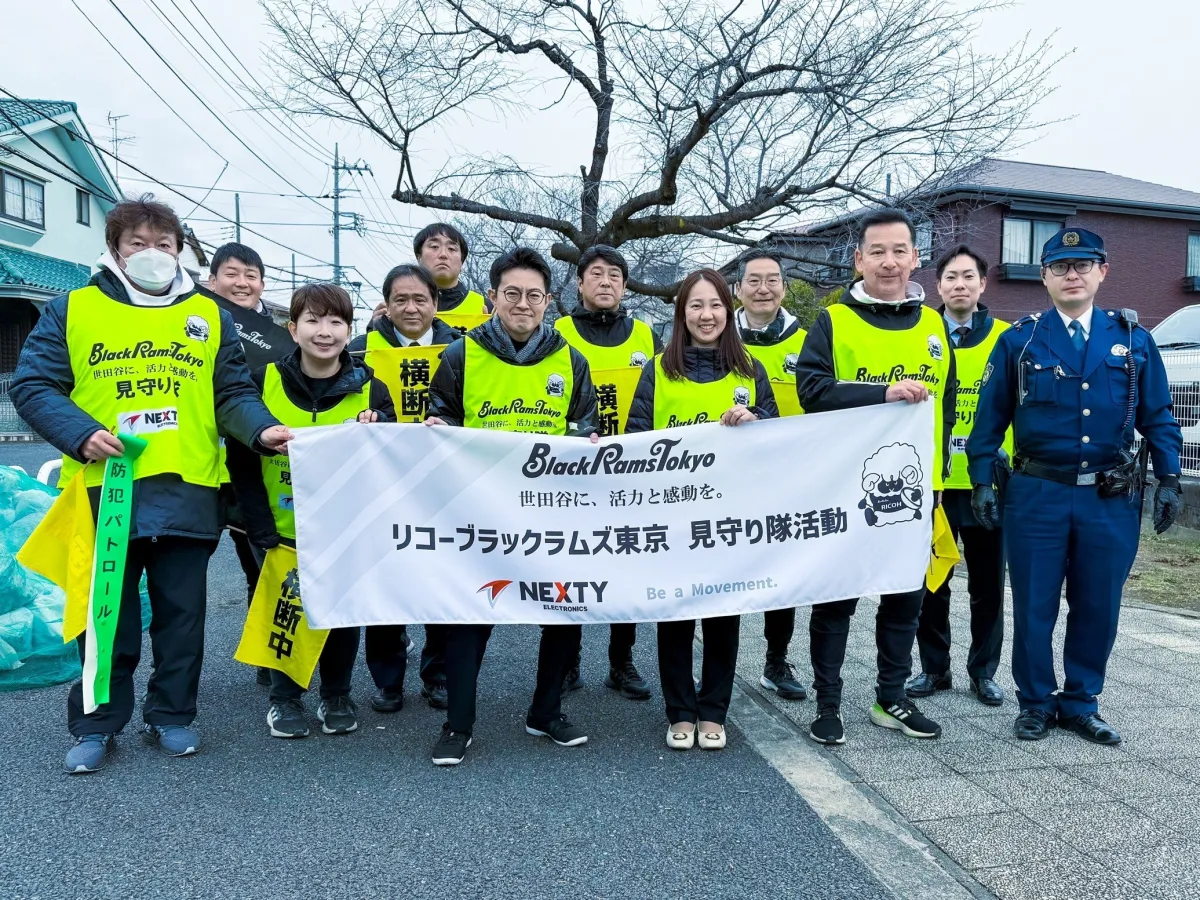 リコーブラックラムズ東京とネクスティエレクトロニクスが地域安全活動を強化