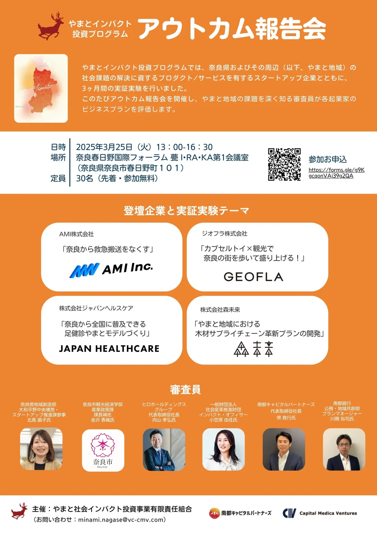 2025年3月25日、奈良県奈良市で「やまと社会インパクトファンド」によるアウトカム報告会が行われます。この報告会では、やまと地域の社会課題解決を目指して活動するスタートアップ企業4社が集まり、3ヶ月間の実証実験の結果を発表します。