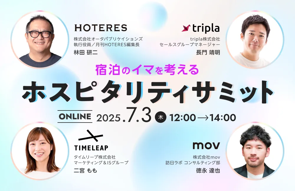 2025年には大阪・関西万博を控え、国内旅行者だけでなくインバウンド観光客の増加が期待される日本。そんな中、宿泊業界は新たなビジネスチャンスの時代を迎えています。本記事では、ホスピタリティの未来を見据えるオンラインセミナー「ホスピタリティサミット」の内容をご紹介します。このイベントは、業界最大級のインバウンドビジネスメディア「訪日ラボ」と集客プラットフォーム「口コミコム」を運営する株式会社movが主催し、2023年7月3日に開催されます。