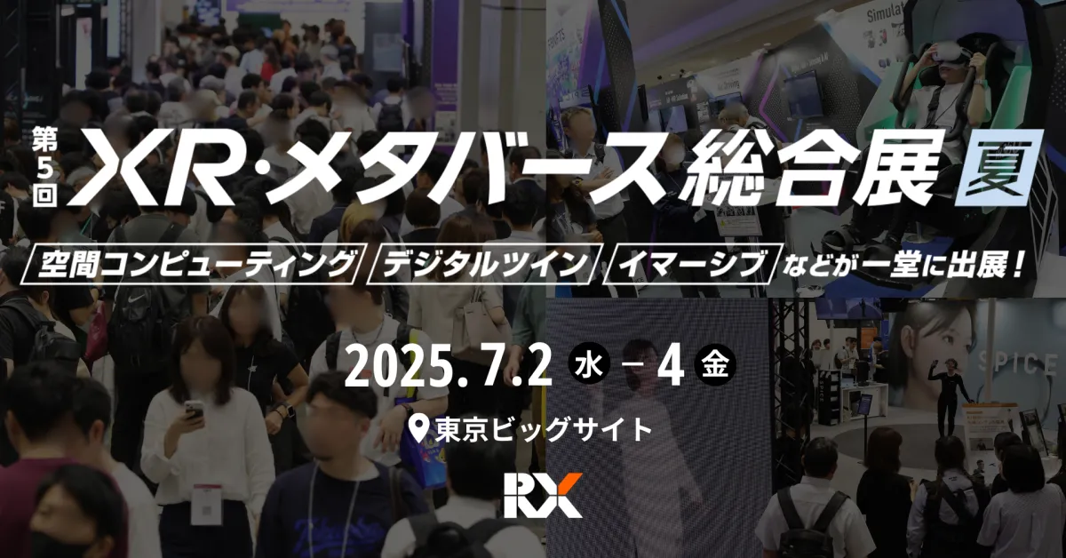 来る2025年7月2日(水)から4日(金)までの3日間、東京ビッグサイトにて「第5回 XR・メタバース総合展 夏」が開催されます。主催はRX Japan株式会社で、最新のXR(拡張現実/仮想現実/複合現実)及びメタバース関連技術を紹介する日本国内最大の専門展示会です。