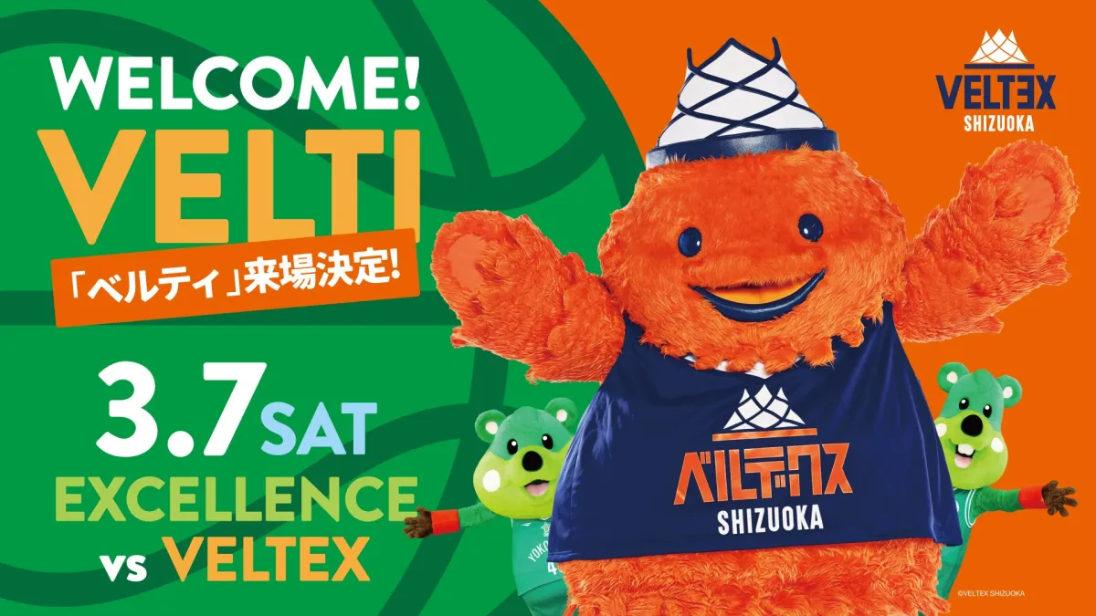 来たる3月7日(土)、午後2時05分に行われる「第23節 ベルテックス静岡」戦に、公式マスコットの「ベルティ」が来場することが決定しました。試合は横浜武道館にて開催され、ファンと共に熱いゲームを盛り上げます!