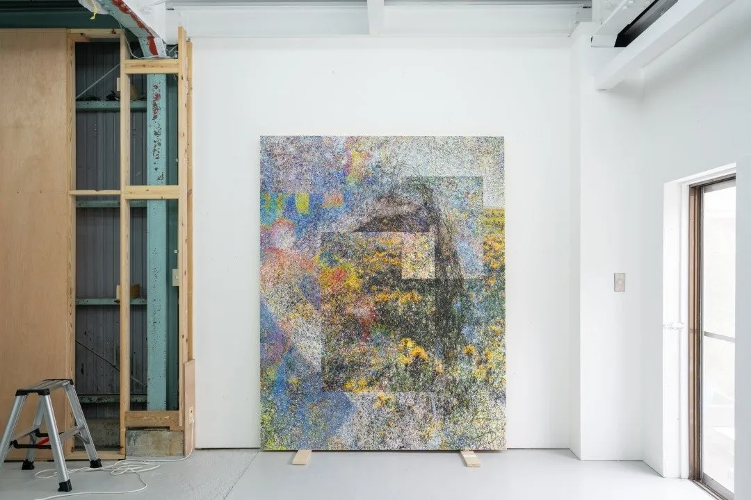 荒井理行のアートは、写真の表面を越えて想像することから始まります。彼はキャンバスに貼られた画像の外側に新たな視覚的世界を構築するため、シリンジを使って絵具を重ねていきます。これにより、彼の作品は多層的なイメージへと変化し、見る者を驚かせます。その制作過程は、まさに「見える」ものと「見えない」もの、また「描く」ことと「描けない」ことの境界を行き来する独自の旅なのです。