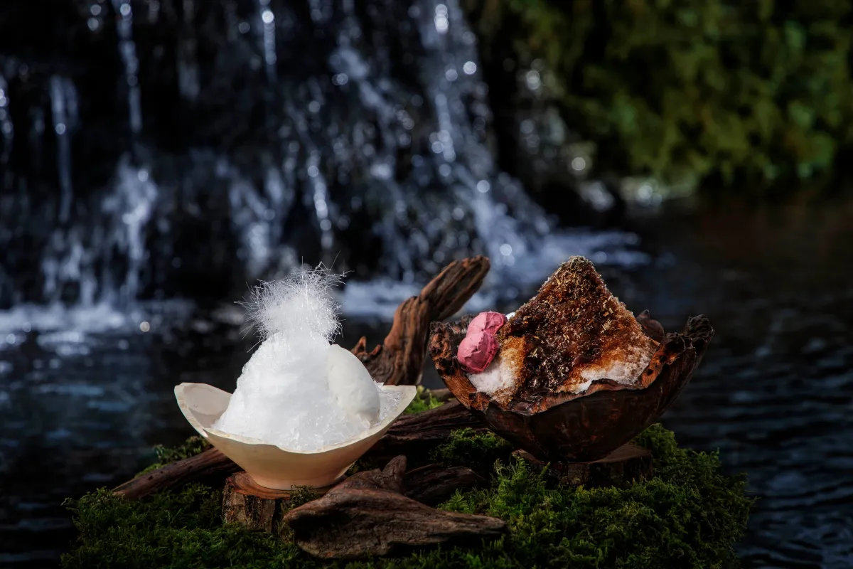 今年新たにラインナップとして加わった「軽井沢白樺かき氷」は、白樺の樹液を使用した特製シロップを使い、その上に白樺ゼリーと中には軽やかなムースを仕込んだ贅沢な一品です。雪解けの時期にしか採取できない貴重な白樺樹液の甘さが広がるこのかき氷は、まさに大人のための洗練されたデザートでしょう。さらに、白樺の樹液と枝葉から製造された特製アイスクリームを添えて、より一層の楽しさを提供してくれます。