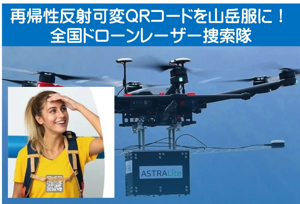 「再帰性反射可変QRコード」は、特殊な再帰性反射材と可変型のQRコードを組み合わせたもので、光を利用した捜索システムを実現しています。このQRコードを山岳ウェアやキャンプ用の服に装着することで、レーザー捜索が可能となり、何かあった際に迅速に見つけてもらえる手助けをします。