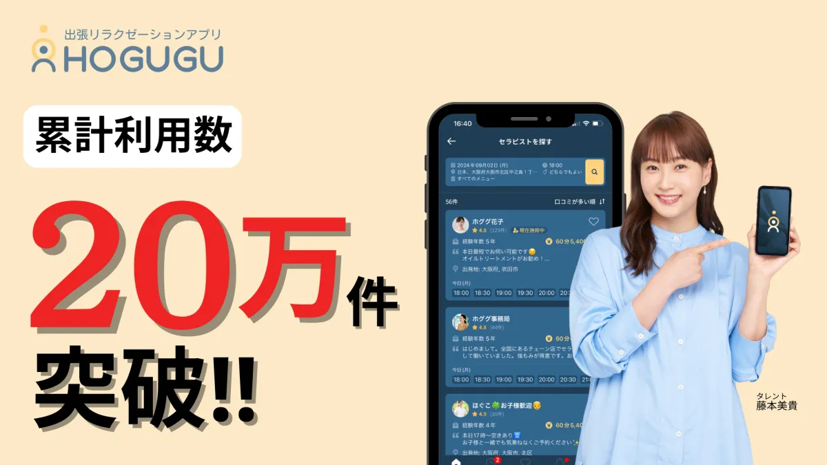 株式会社HOGUGUテクノロジーズ(本社:大阪府大阪市)が提供する出張リラクゼーションアプリ『HOGUGU』は、2025年1月に累計利用数が20万件を超えました。この成功を祝し、同社はSNSでのキャンペーンを実施するとともにサービスエリアの拡大を計画しています。
