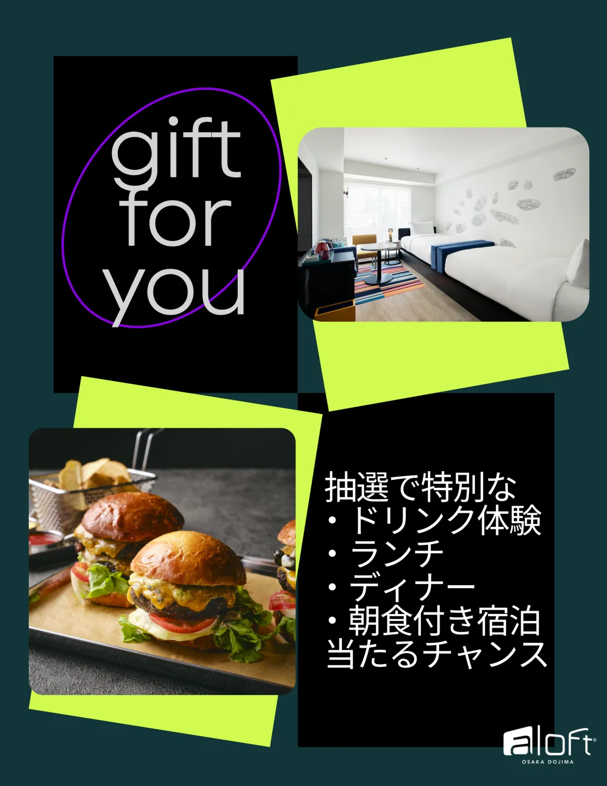特典の内容は毎月変更される可能性があり、最新情報を見逃さず受け取るためには、公式Instagramをチェックすることが推奨されています。定まったスケジュールはなく、ルールも難しくありません。大切なのは、ふとした瞬間に訪れる“ちょっとしたワクワク”の感覚。これにこそアロフト大阪堂島の魅力が凝縮されています。