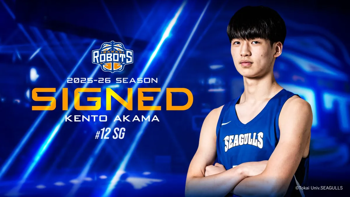 昨年の12月には大学2年生としてドラフトエントリーを行い、1月のB.LEAGUE DRAFTで茨城ロボッツからの指名を受け入団が決定しました。赤間選手が報道したコメントによると、「ロボッツの選手としてユニフォームを着ることができ非常に嬉しいです。これからも出場時間を勝ち取るために練習に臨んでいきます」とのこと。
