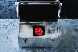 このかき氷の楽しみ方は、ただ味わうだけではありません。まずは、謎めいたジュラルミンケースから細工氷が登場します。白手袋をしたスタッフが特別にお届けし、蓋を開ける瞬間、ドライアイスによるスモークの演出とともに美しい氷がお目見えします。この新しい遊び心溢れる体験が、食事をより一層特別なものにしてくれるでしょう。