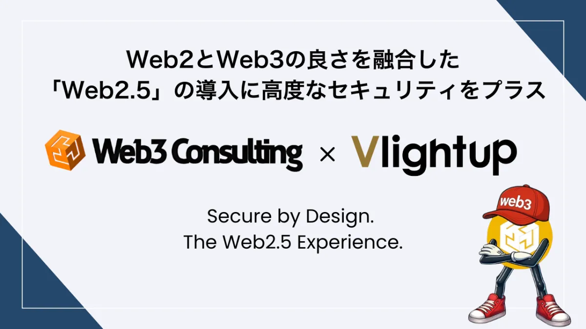 2023年、株式会社Web3ConsultingとVlightup株式会社が業務提携を発表しました。この提携により、両社はWeb3領域における安全性の高いソリューションを共同で提供していくことになります。具体的には、Web3Consultingが提唱する新しい概念「Web2.5」に、Vlightupが提供するセキュリティプラットフォーム「TRUSTAUTHY」を組み合わせることで、安全かつ利便性を兼ね備えたWeb3導入支援サービスを実現します。