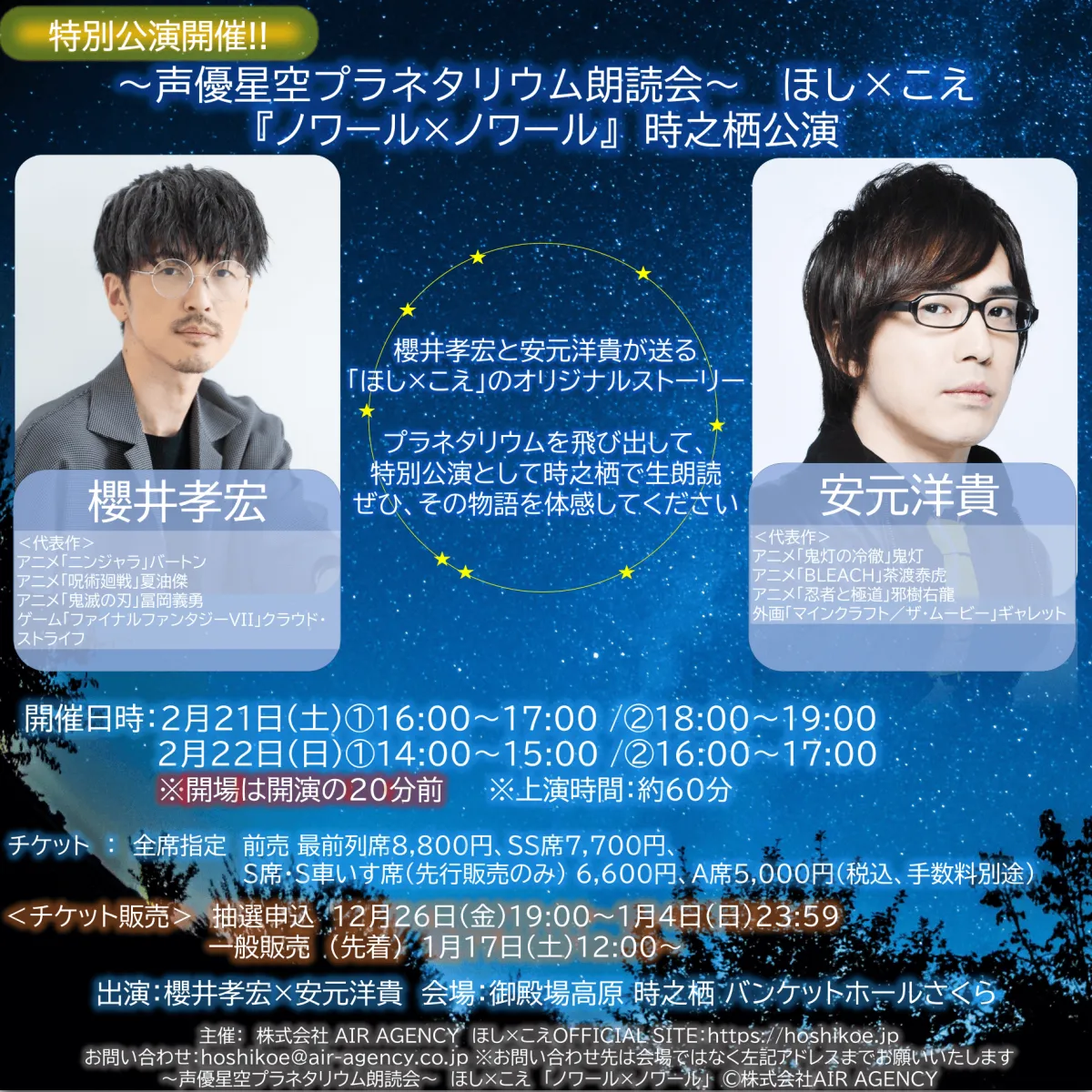櫻井孝宏と安元洋貴の特別朗読『ほし×こえ』が静岡県御殿場で開催