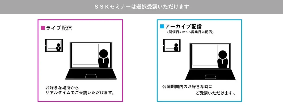セミナーはオンラインで開催され、Zoomウェビナーを使用します。リアルタイムで参加できない方のために、アーカイブ配信も提供されますので、受講後2週間は何度でも視聴可能です。この点が特に魅力的で、多忙なビジネスパーソンにも参加しやすい環境が整えられています。