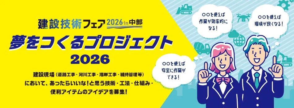 2026年、建設技術フェアが中部地域で開催されます。このイベントでは、大学生や高校生などの学生を対象にした「夢をつくるプロジェクト2026」が実施され、多くの斬新なアイデアを募集します。これからの建設業界を支える若い力の創造性を応援し、未来の技術や工法を形にするチャンスです。